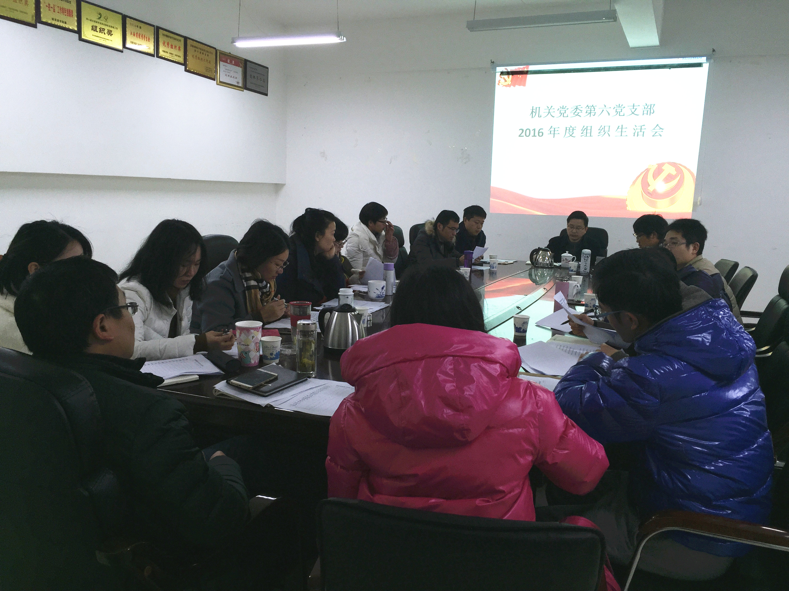2017年1月13日,机关党委第六支部在大学生活动中心217室召开了组织生活会。机关党委书记曾德生出席会议并讲话,支部书记刘家金主持了会议。