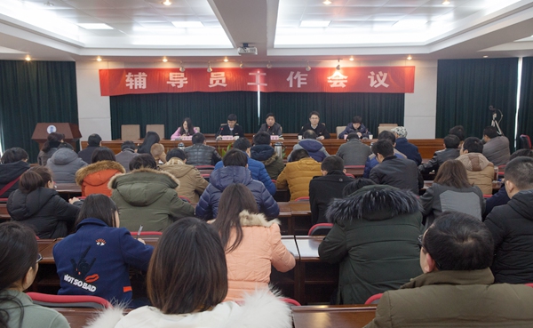 本网讯(文/董丽娜 图/熊岩涛)2月12日,我校在行政楼307会议室召开了辅导员工作会议。副校长吴本荣,学工部(处)、团委、各学院(部)党总支负责人出席,全体辅导员参加会议。